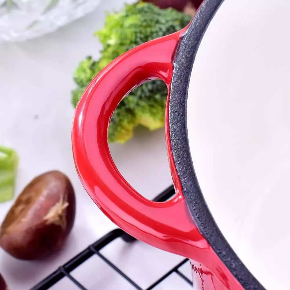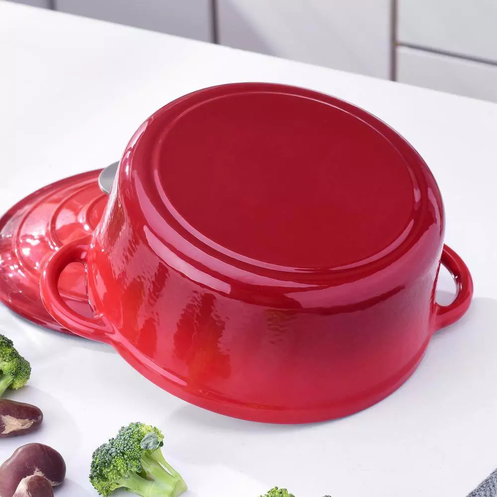 1-Piece 2 qt. Red Round Enamel Cast Iron Dutch Oven with Lid by Velaze
