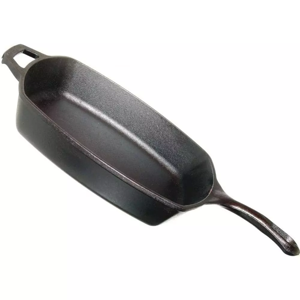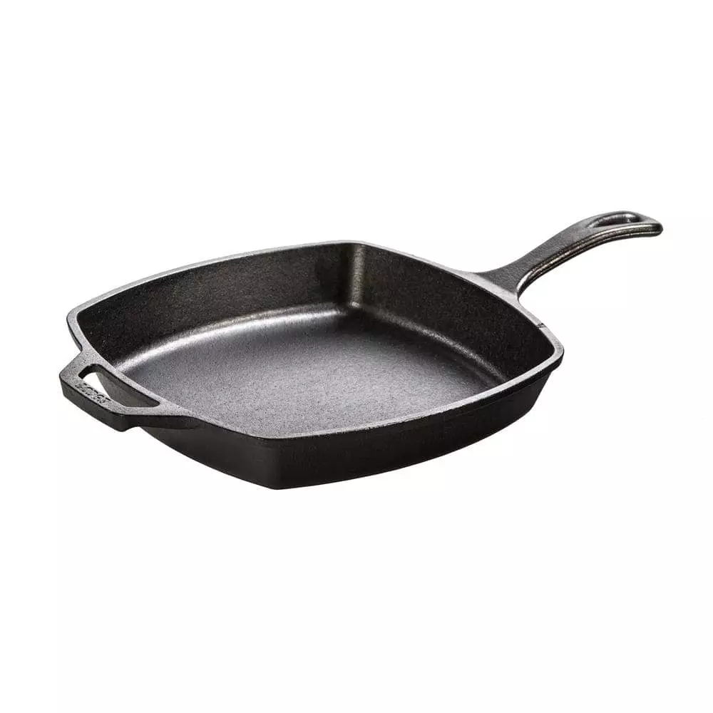 The Lodge 10.5 in. square skillet is beautifully designed and offers more cooking surface than a traditional round pan for even more superior searing. Unparalleled in heat retention and even heating. Foundry seasoned cast iron.
