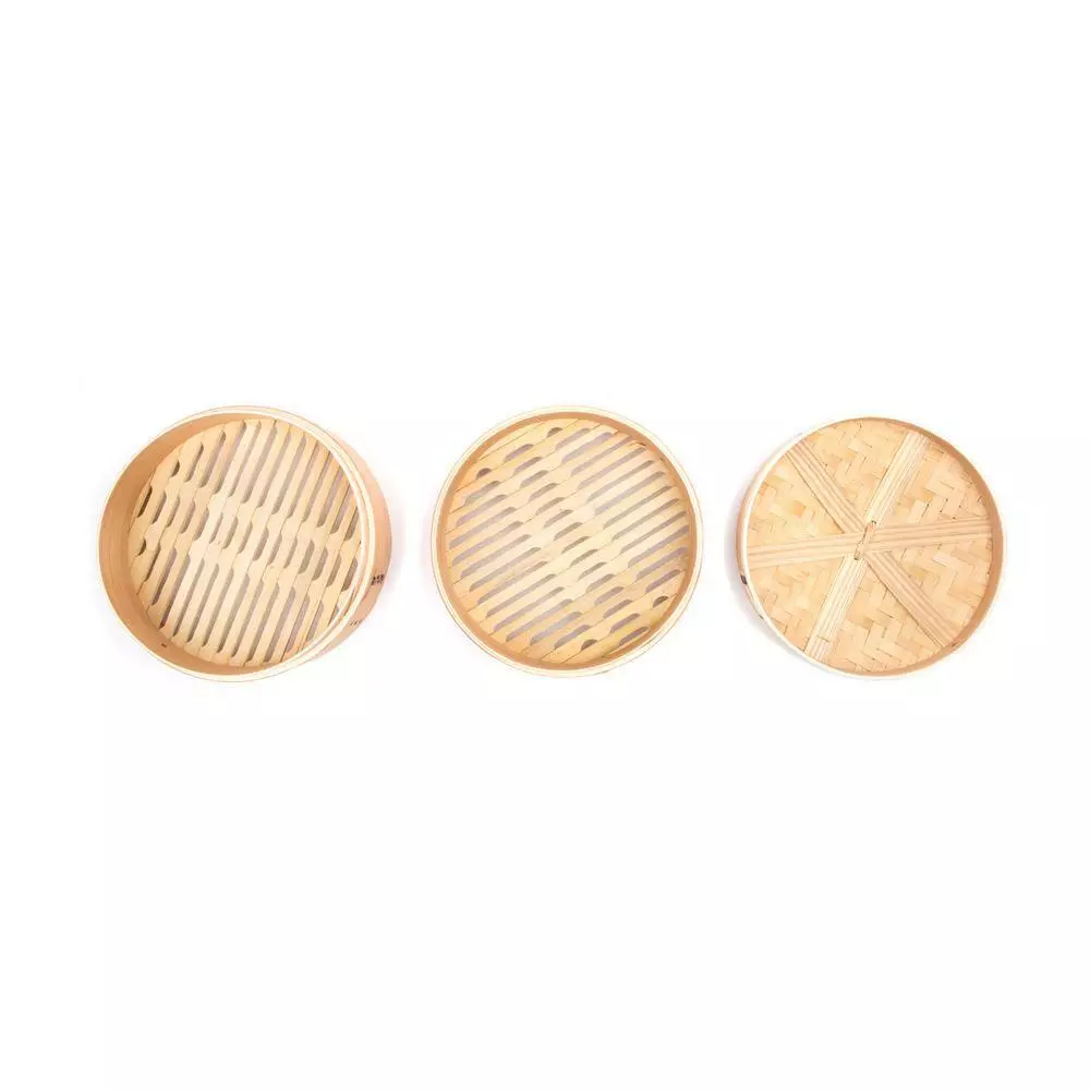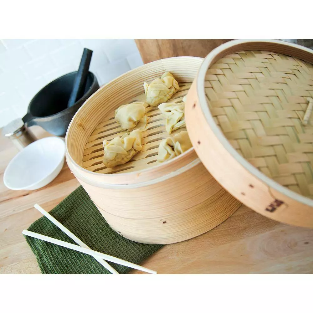 This Bamboo Steamer is a must have for all lovers of Asian cooking. The steamer is made of bamboo and allows you to steam foods the traditional and healthy way. Steaming in this three piece steamer retains food’s natural flavors, vitamins and nutrients better than any other method. Designed with two tiers for steaming a variety of foods, such as meats or pre-cooked grains, all at the same time Ideal for vegetables and seafood or can even be used as a serving piece for pastries and bread. Maximize the delicious taste and vibrant colors of your favorite veggies and fish with this bamboo steamer.