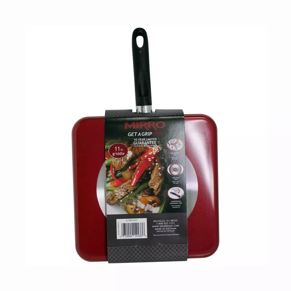 The Mirro 11 in. Nonstick Square Flat Griddle in red is ideal for warming tortillas, making crepes, toasting sandwiches, cooking quesadillas, and all your favorite breakfast foods such as pancakes and eggs. The nonstick surface allows you to use less oil and makes clean-up a breeze. The best part is that you can cook healthy with a minimum about of oil or butter and still make tasty meals. They are a perfect addition to any Kitchen. There are a variety of different sizes to select from. They will become a favorite especially when cooking for a large crowd. They can be used on both Gas and Electric Stoves, so you do not have to limit yourself from using it. Feel free to use the griddle as a serving piece after cooking. Next time you have a meal that calls for tortillas, make sure to make and heat them up with your Mirro Griddle.