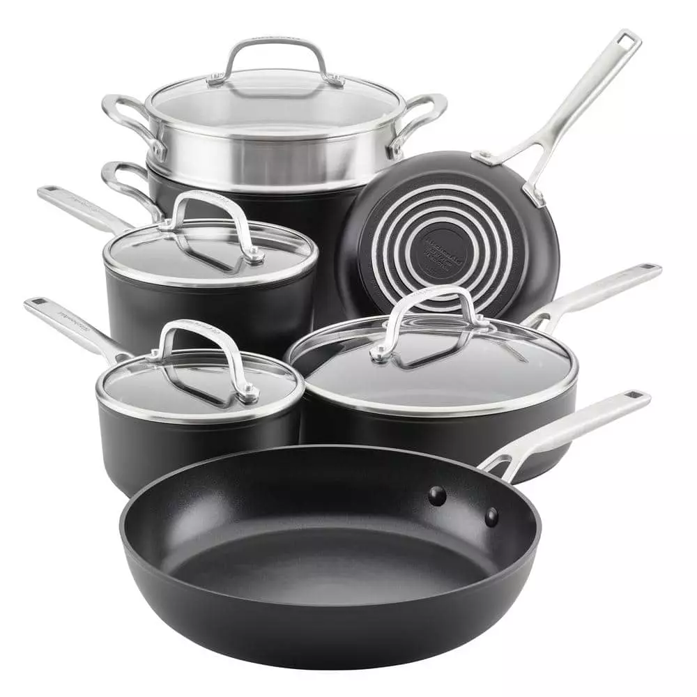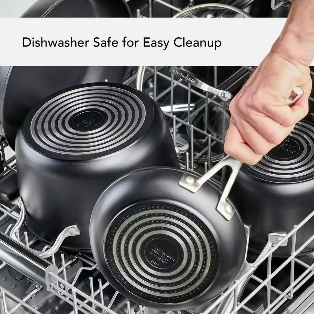 - Premium food release: KitchenAid hard anodized pots and pans are finished with triple layer, PFOA-free nonstick to stand up to daily wear and tear