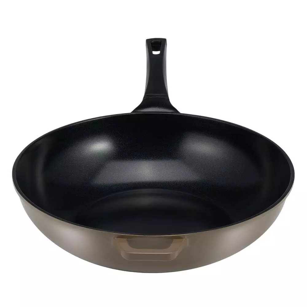 14 in. Green Aluminum Earth Wok with Smooth Ceramic Non-Stick Coating (100% PTFE and PFOA Free) by Ozeri