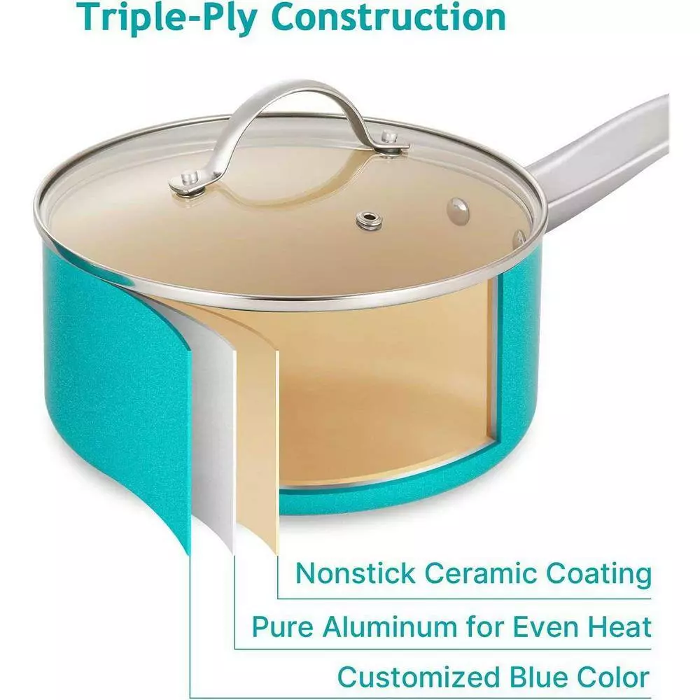 EPPMO Ceramic Nonstick and Healthy Non-toxic Sauce Pan have a durable and innovative Triple-Ply construction with a long lasting Nonstick Ceramic Coating for easy cleaning and less oil cooking. It’s premium quality aluminum core allows quick and even heat distribution, which makes cooking easier and more effective. At the same time, it is super easy to clean up by handwash or dishwasher, with oven safe up to 500° F (with glass lid up to: 300 ℉).