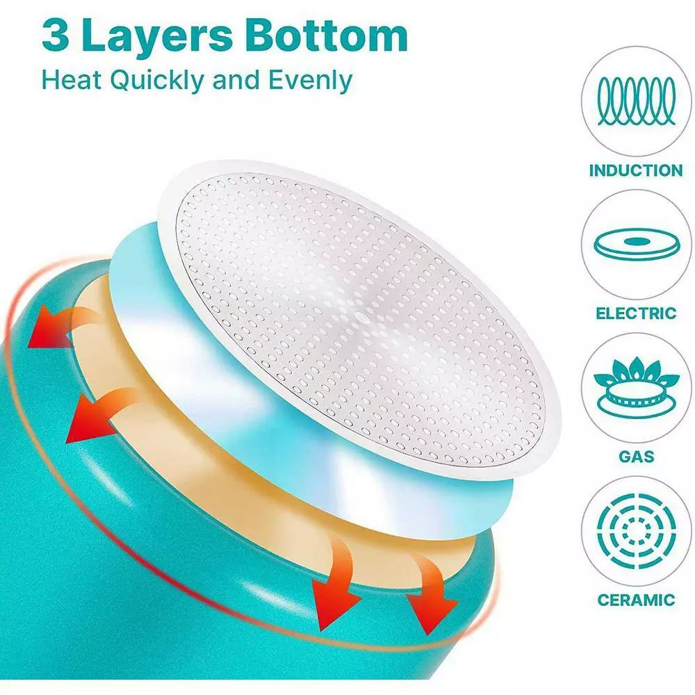 - Triple-Ply Construction – The advanced painting tech makes the surface of pan more smoothly, cleaning becomes easiliy