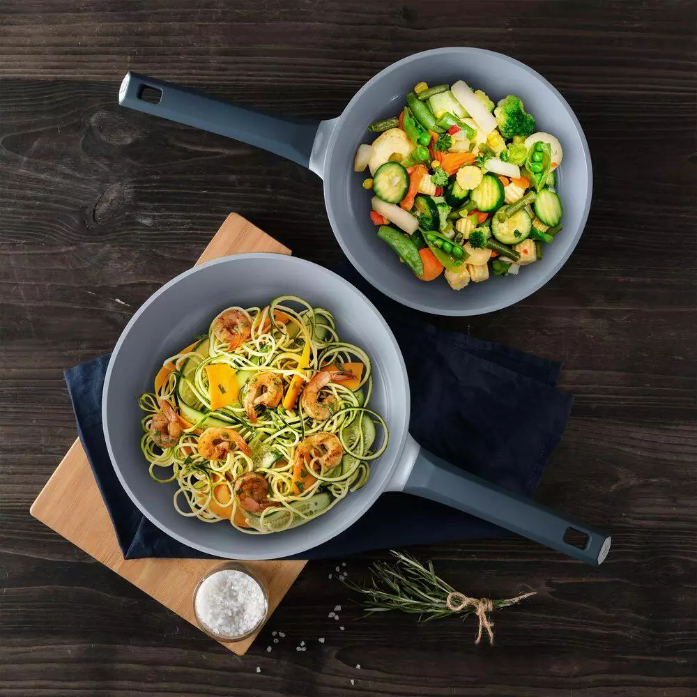 The Gastro Green collection from MasterPRO focuses on essential daily-use cookware with a better-for-you approach. The healthy ceramic non-stick system is known for undergoing a manufacturing process that’s better for the environment when compared to other coatings while providing outstanding release that’s free from PFOA, PTFE, lead, and cadmium. Constructed of high-quality cast aluminum, the Gastro collection from MasterPRO possesses incredible durability that heats up 1.5x faster than traditional cast iron and is up to 2x lighter. Featuring ergonomic soft-touch handles, you’ll always have a comfortable and confident grip. This collection is suitable for all stove types, including induction, oven safe up to 350°F, and dishwasher safe.