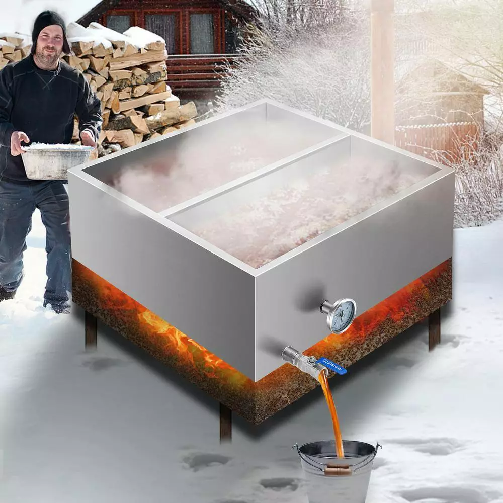 - Efficient Processing Flow: Handle nearly 23.6 gal. of sap in total, meaning 357 bottles of 0.07 gal. maple syrup can be made. The maple syrup pan comes with a 3/4 in. valve to adjust the flow rate and load the maple syrup into other containers. It is equipped with a precise thermometer, helping you monitor the temperature of maple sap