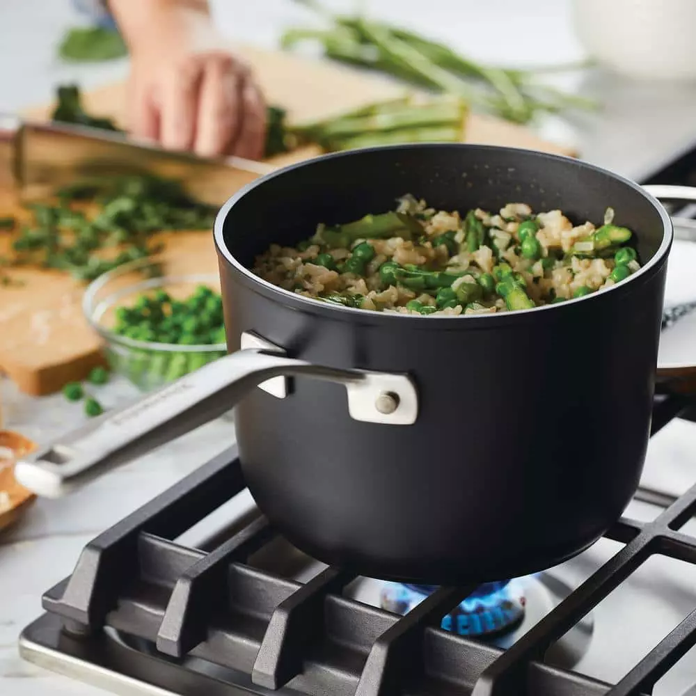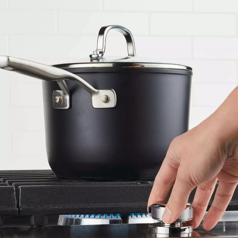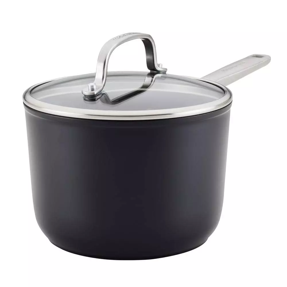 - PREMIUM FOOD RELEASE: KitchenAid hard anodized saucepan is finished with triple layer, PFOA-free nonstick to stand up to daily wear and tear