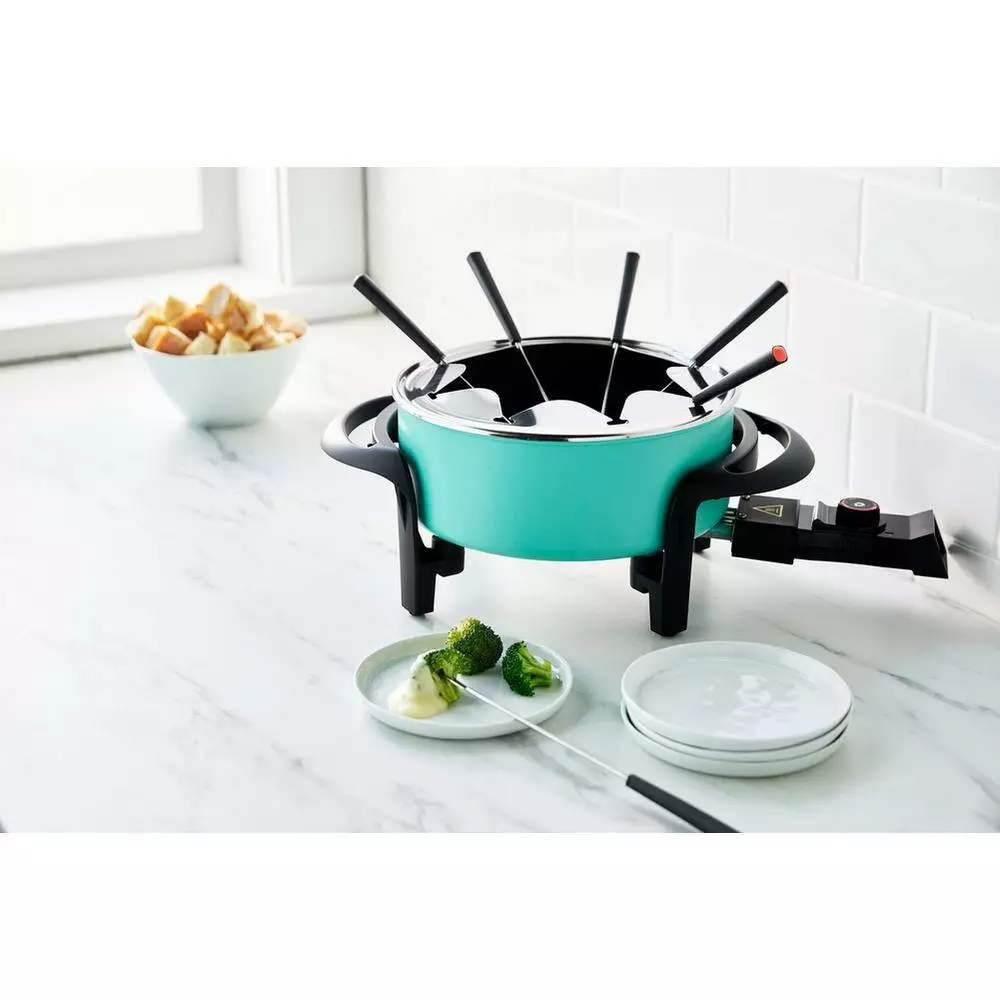 Fondue it together. The Fondue Party makes it easy for people to get together and celebrate flavor. Everyone can gather to dunk a savory meat or a sweet dessert and create a delicious taste to define the night. The 3 qt. capacity means you have plenty of food for everyone. Fondue Party features our signature healthy ceramic nonstick coating to makes cleaning up after the party effortless. With low, medium, and high settings, it’s easy to find the right flavor for your meal. The 8-color coded tips on each fork make it simple for your guests to have their own.