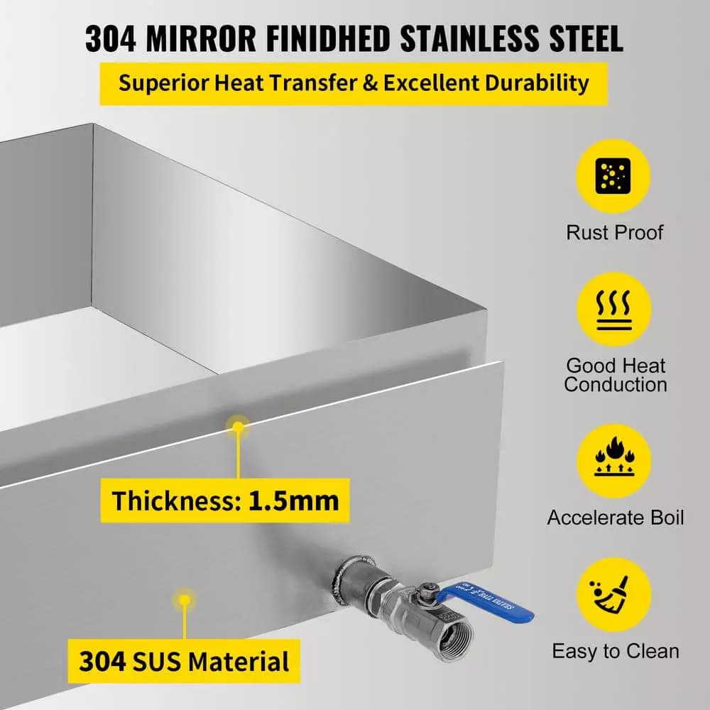 This VEVOR superior evaporator pan is 304 food-grade stainless steel with a mirror-finished surface. It comes with a 3/4 in. throttle valve, which facilitate you to control the maple syrup. Great for pancakes, waffles, oatmeal, ice cream, and more. Start taking action today and get your “health angel” tomorrow!