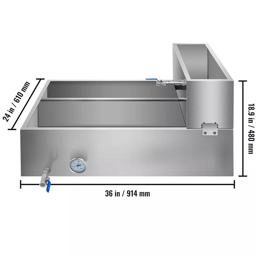 - Specifications:Material: 304 Stainless Steel,Valve Size: 3/4 in,.Thermometer: 32-392℉,Product Dimensions: 36 x 24 x 18.9 in.,Product Weight: 52.5 lb.