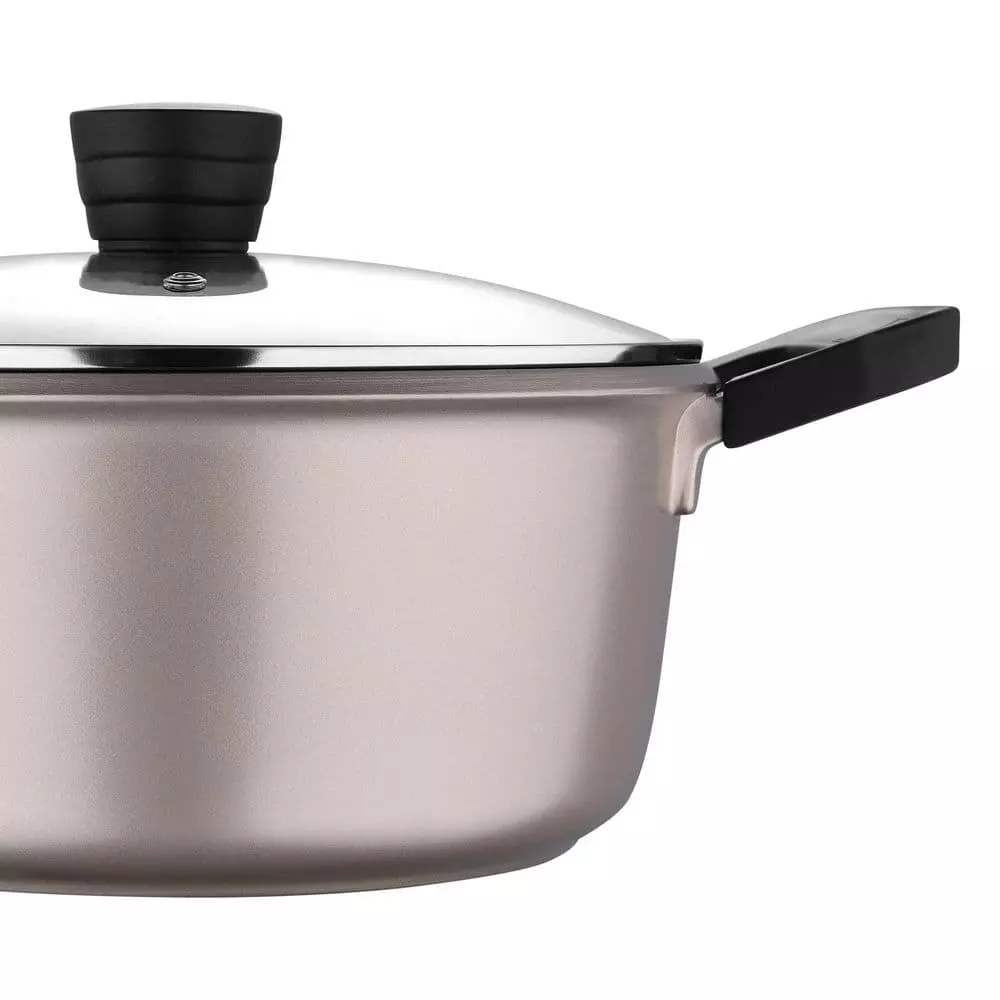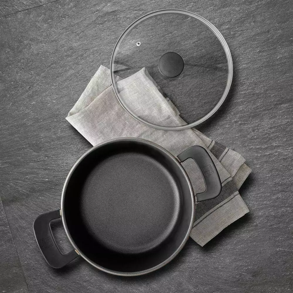 - All Heat Sources – Cookware is oven safe up to 350F. Cast aluminum pans are suitable for all stove types, including induction.