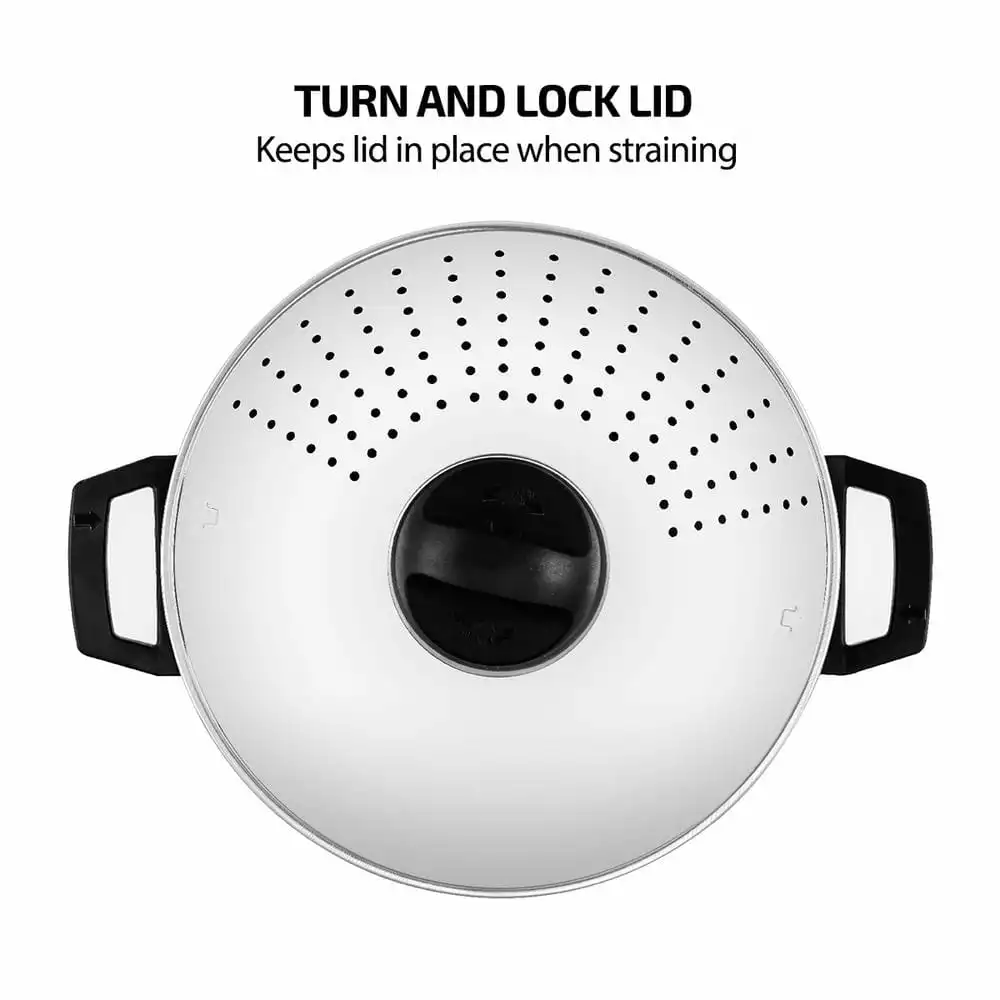 - Strainer Lid Included – The best solution for all your pasta cooking. Eliminates the need for a separate strainer, saving you time and storage space.