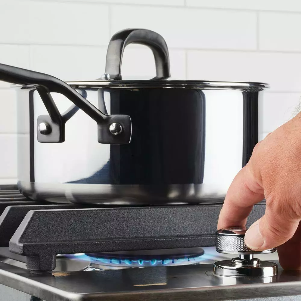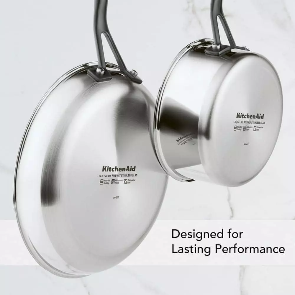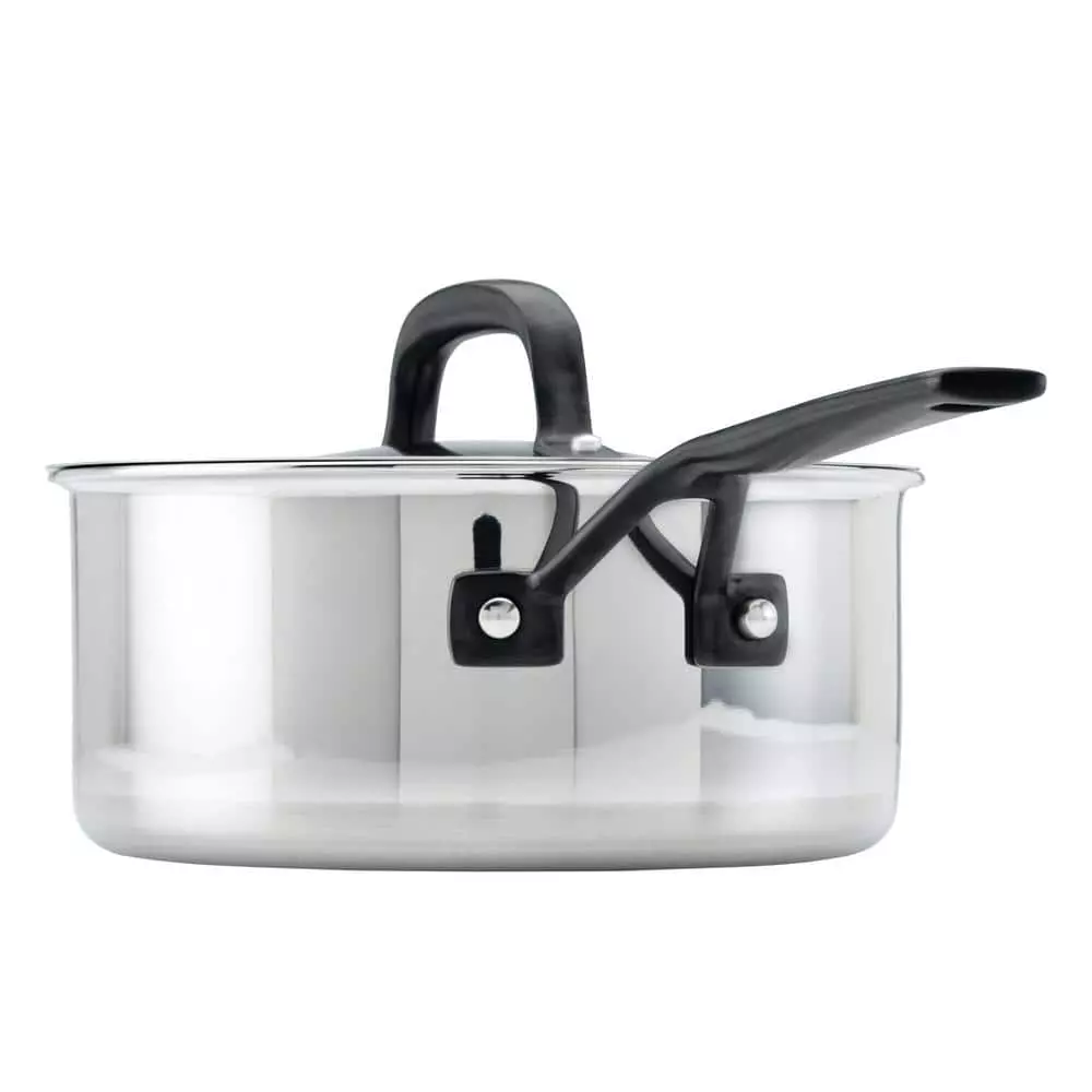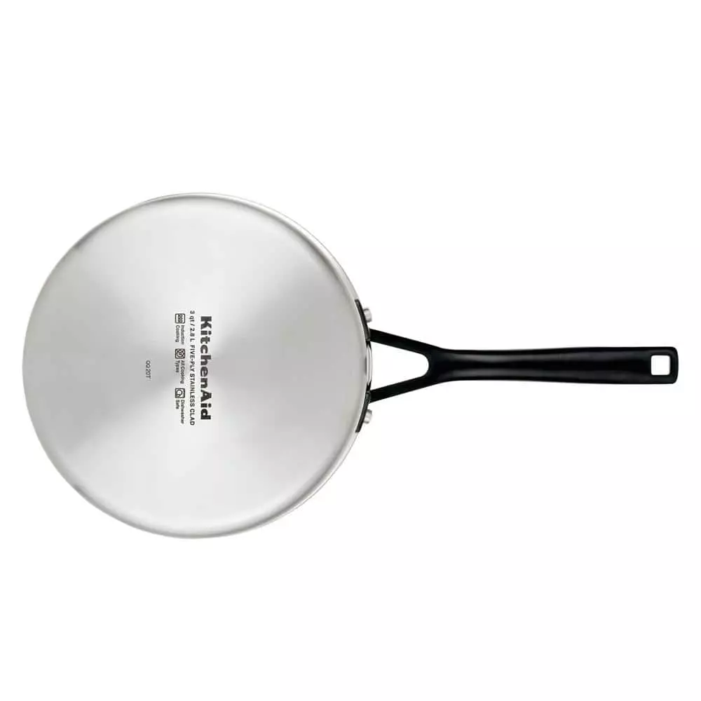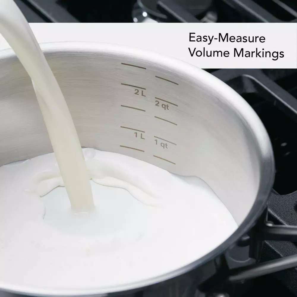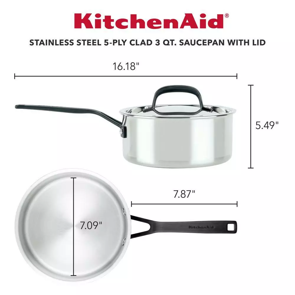 Build layers of flavor with the KitchenAid 5-Ply Clad Stainless Steel Saucepan designed for precision cooking with exceptional base-to-rim heat conduction. Crafted from 5-layers of heat conductive metal throughout, this heavy-gauge pan is built to fuel endless possibilities in the kitchen while providing superior heat retention. Etched measuring marks on the saucepan assist with the adding of ingredients for preparing precise recipes like a delicate bechamel sauce. Stainless steel lid locks in heat and flavor to get the most out of every ingredient, and sealed rims prevent corrosion, allowing for the 3-qt pot to be truly dishwasher safe. Broiler and oven safe to 500°F for versatility, freedom, and creative cooking.