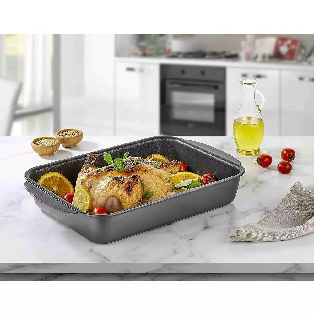 Context Titanium non stick roasting pan is ideal for wide variety of roasting tasks. Made with durable materials and latest technology in Turkey. With context your roasting task would be easy.
