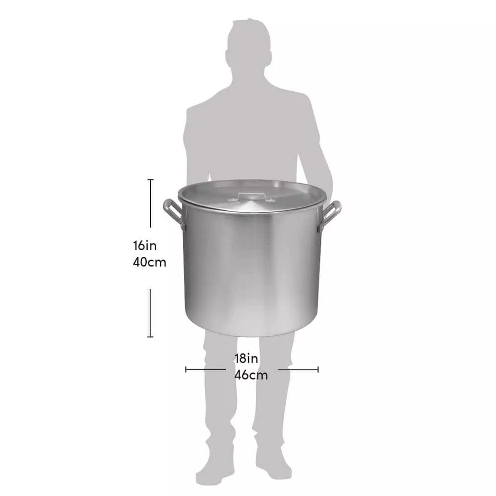 - 64 qt. stockpot with premium quality aluminum body and vented lid