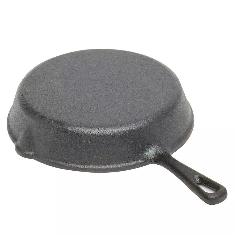 Designed to last for years to come, this skillet is seasoned with natural plant oil for a smooth, quick-release finish that improves over time. Side pour spouts enable you to drain out excess grease and oil. Hanging hole in handle lets you store on a kitchen rack when not in use. Made from heavy duty cast iron, it provides superior heat distribution. The pan is pre-seasoned with natural oil and ready to use at your convenience. Ideal for both indoor and outdoor cooking. Use on a stovetop or on an outdoor grill. Enjoy the durability and convenience that this premium cast iron cookware can bring to your life. Hand wash with warm water and use mild soap. Dry thoroughly with a soft towel. Item dimensions may differ slightly due to the unique nature of the product. Color and finish may also differ from the images shown due to differences in monitor displays. Props and accessories are not included.