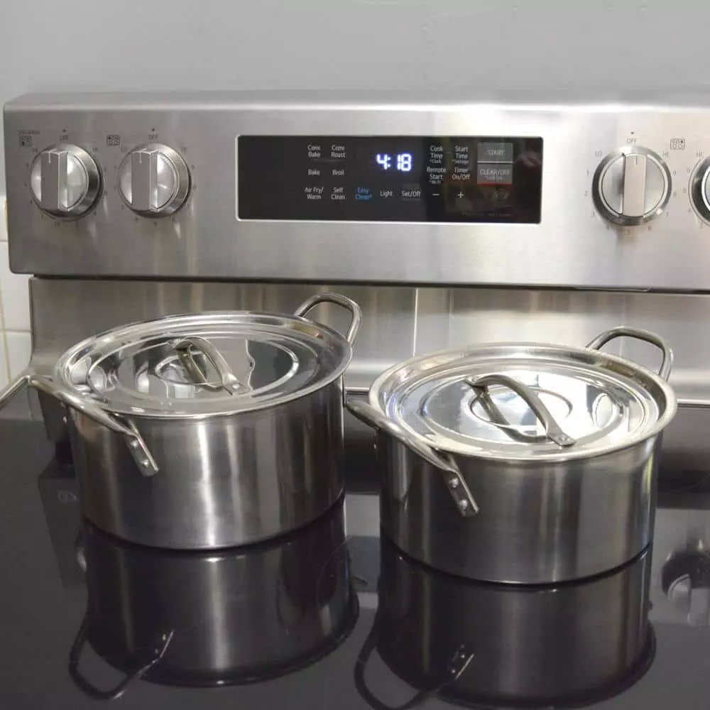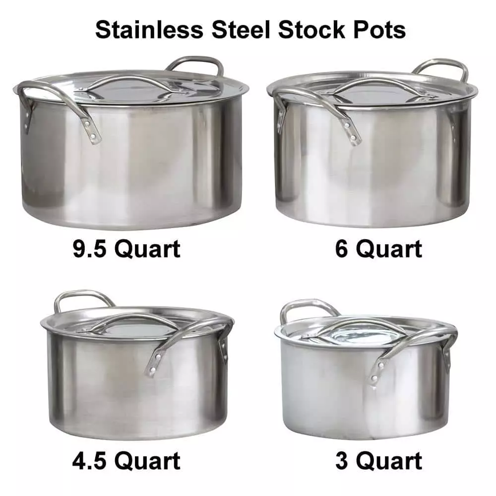 - Pots and lids constructed of 202 stainless steel