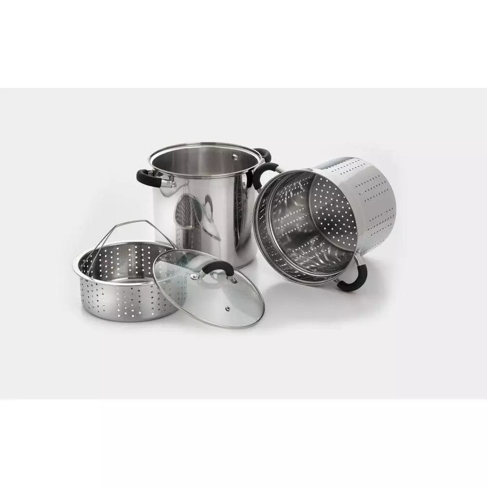 This multifunction cooker allows you to steam your favorite vegetables, cook pasta and use it as a large stockpot. Encapsulated base provides faster and even heat distribution. Constructed in 18/10 stainless steel and induction stovetop ready.