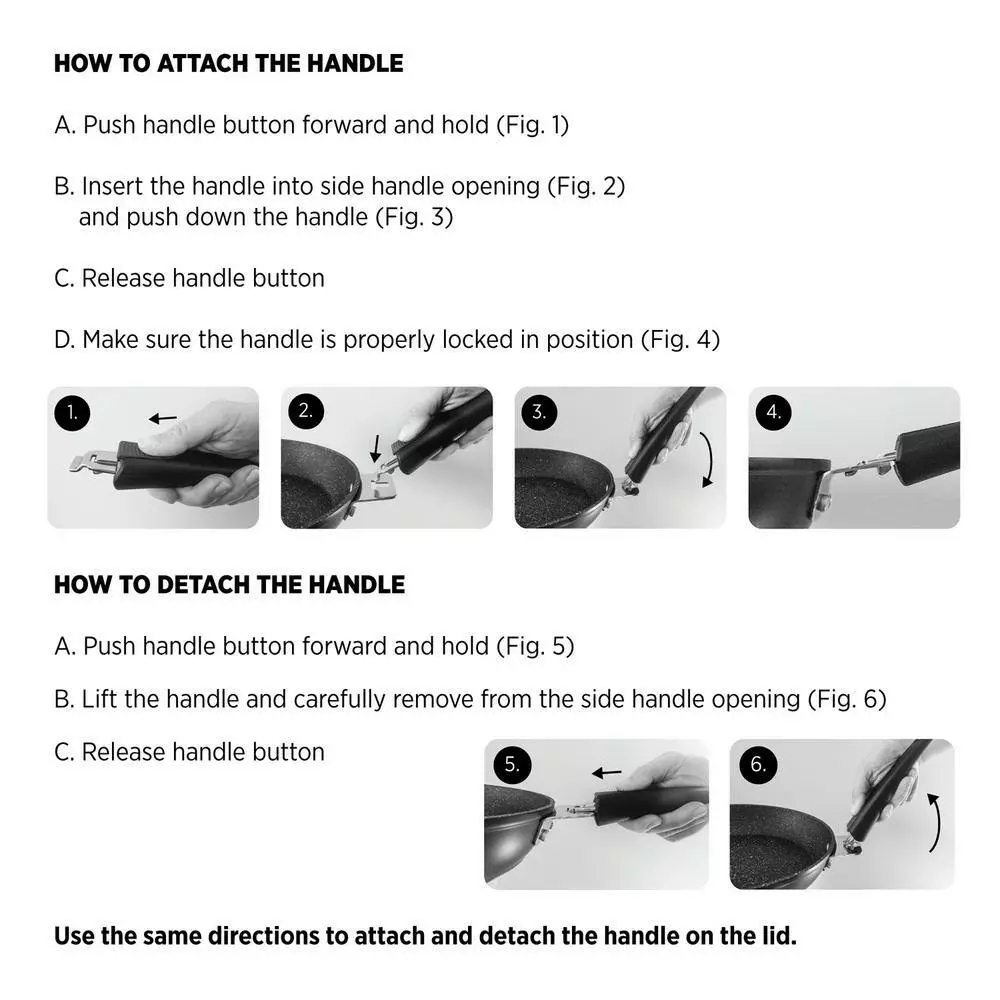 - T-lock detachable handle will fother cookware within t-lock system