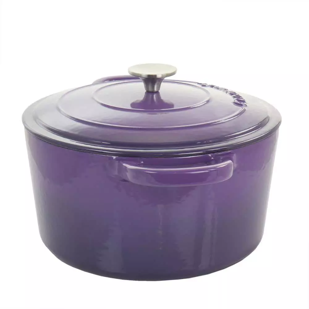 Take your at -home cuisine to the next level with the Crock-Pot Artisan 2 Piece 5 Quart Enameled Cast Iron Dutch Oven with Lid in Lavender. This essential kitchen tool is crafted from quality enameled cast iron, making it strong and durable enough to handle all your culinary creations. This dutch oven comes with a self-basting lid to make your cooking experience even easier! This non-electric cookware distributes and retains heat evenly; making it perfect for cooking, serving and storing your meals.