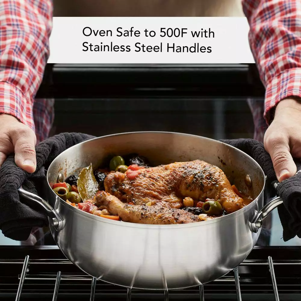 - Stovetop to oven: induction compatible stainless steel casserole is broiler and oven safe to 500°F without lid, oven safe to 350°F with lid