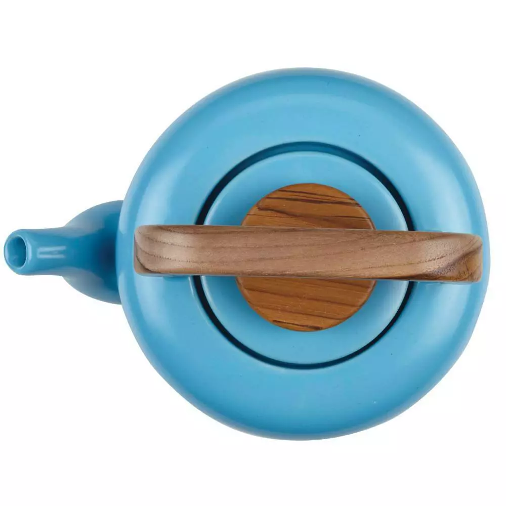 - Snug-fitting ceramic lid is capped with a stylish knob of teak wood prized for its natural strength and beauty