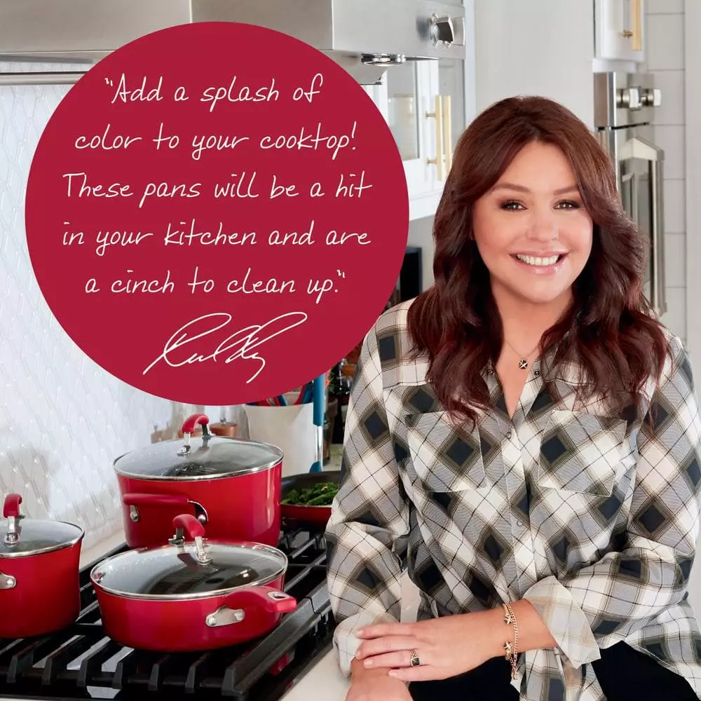 Classic Brights 11 in. Aluminum Nonstick Stir Fry Pan in Red Gradient with Glass Lid by Rachael Ray