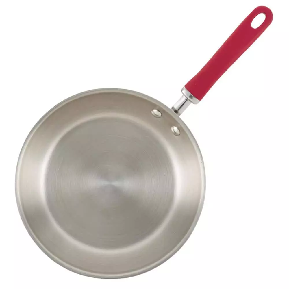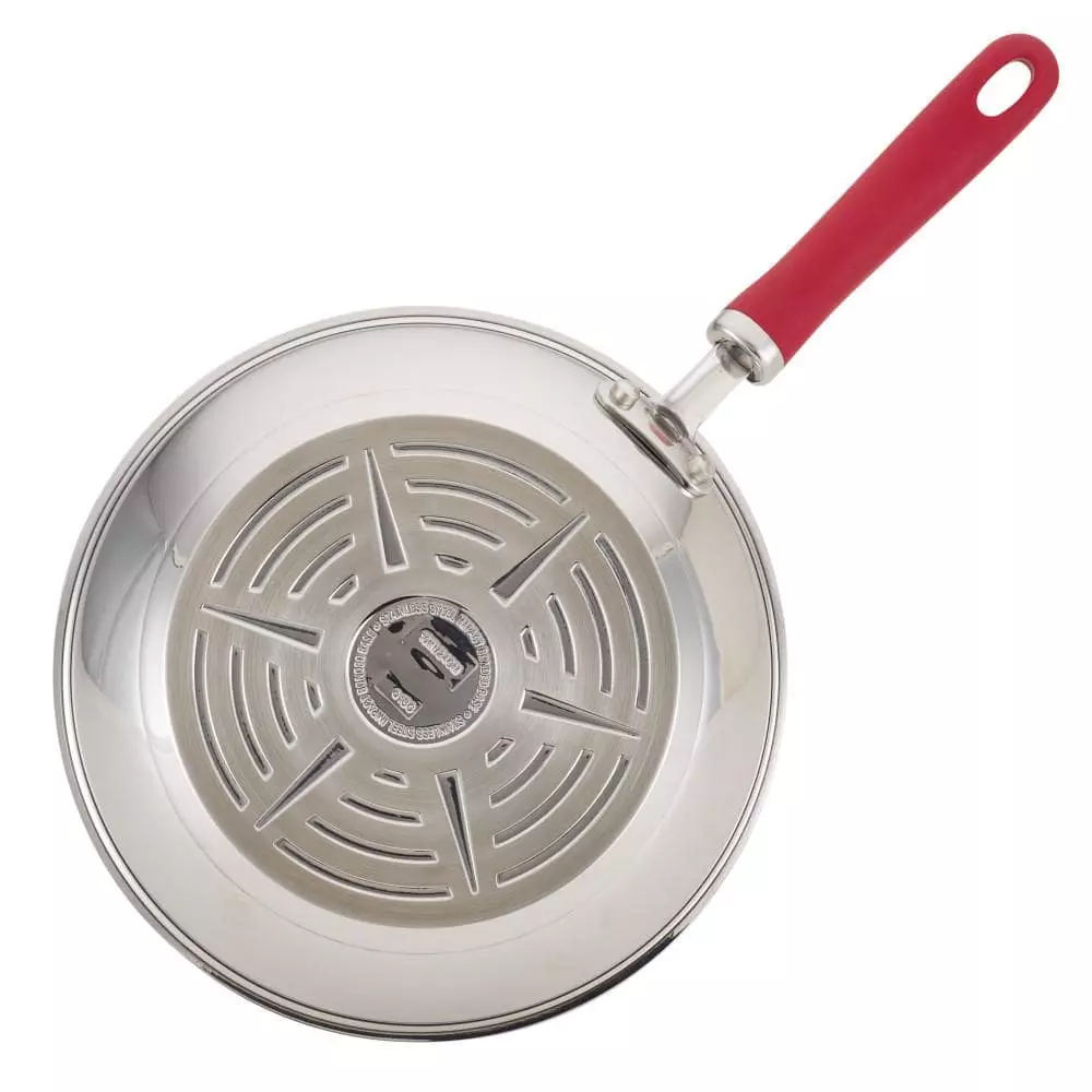 The Rachael Ray Create Delicious 10-Piece Stainless Steel Cookware Set brings high performance and easy convenience to home chefs eager for kitchen versatility with style. Featuring stainless steel construction, this collection of essential pots and pans boasts engineering for even heat distribution to reduce hot spots that can burn foods. The polished stainless steel cookware features etched measurement markings for gauging quantities while cooking and an induction-compatible base provides ultra strength and durability for years of cooking enjoyment. Colorful, dual-riveted stainless steel and silicone handles provide comfort and control and all of the pots and pans are oven safe to 400°F. The shatter resistant glass lids lock in heat and flavor while allowing foods to be monitored while they cook. Plus, the whole cookware set is dishwasher safe for fast and easy cleanup. From dishwasher-safe convenience to enhanced durability and polished shine, reach for the Rachael Ray Create Delicious 10-Piece Stainless Steel Cookware Set and get ready to create delish.