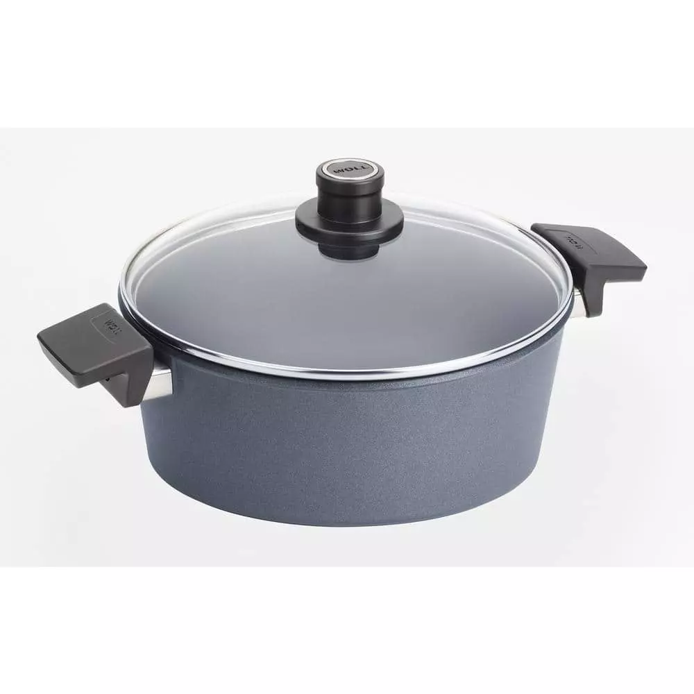 Woll professional cast products stand for top-quality, top-grade Made in Germany products, manufactured using the highest quality craftsmanship. Our products are individually cast by hand with a high-quality, rened aluminium alloy unstressed and free of any trapped air pockets that lower product quality. The whole coating process takes place in Wolls own manufacturing plant Europes most up to date plant of its type, using state-of-the-art, environmentally friendly technology emitting very low levels of CO2. The entire manufacturing process and the coatings of all Woll pan ranges are completely free of PFOA. All Woll professional cast products have an extremely cut-resistant surface, which is treated with our unique, tried and tested non-stick coating enabling low-fat, vitamin-rich and healthful cooking.