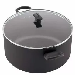 - Stockpot’s heavy-duty aluminum construction distributes heat quickly and evenly