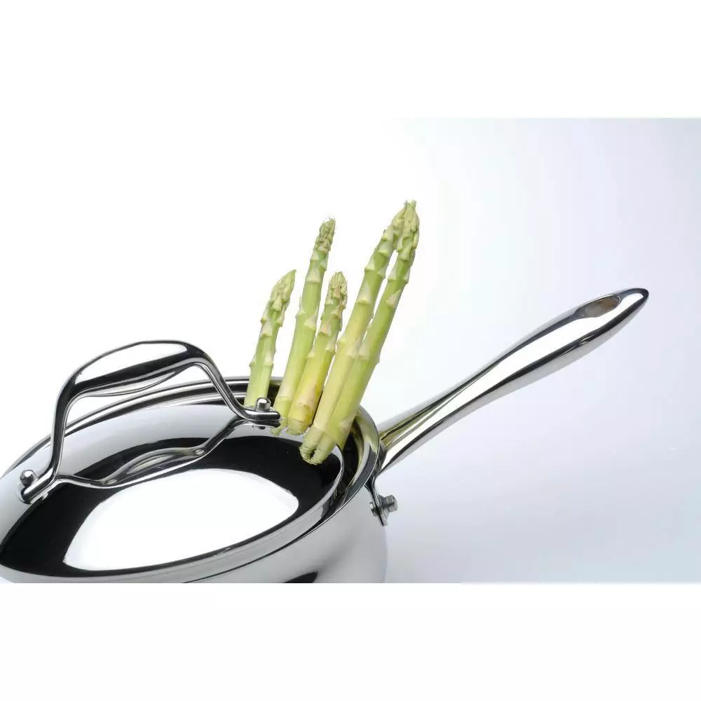 The 2.1 Qt. Sauce Pan has a round belly, mirrored outside finish and 18/10 stainless-steel are the distinguishing features of this line. Revolutionary 6-layer sandwich base for fast and energy-saving cooking. The 18/10 stainless-steel lid seals the pot, preventing moisture and juices from escaping. The ergonomic shaped handle offers a safe grip and comfortable lifting.