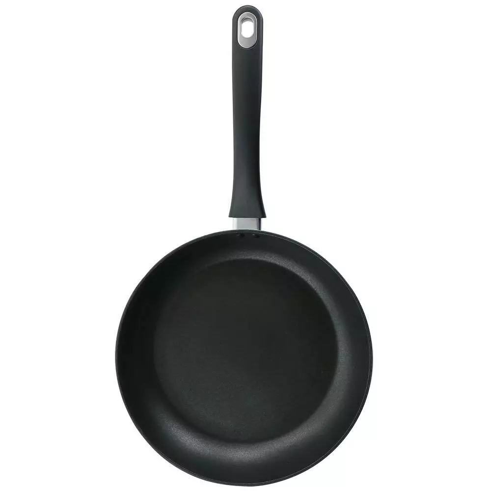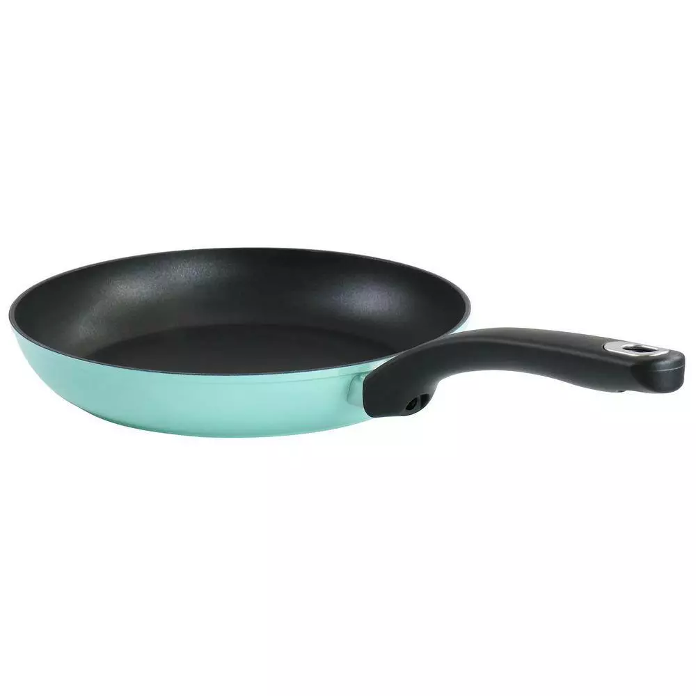 This 11 in. frying pan by Martha Stewart is made with a heavy duty forged aluminum body that provides strength and durability. The long lasting construction features a nonstick interior coating for low-fat cooking as well as easy clean up. Bakelite handle with soft-touch coating stays cool for easy mobility from burner to burner. This pan is finished with a polished outer enamel coating and is compatible with all stove tops, including induction.