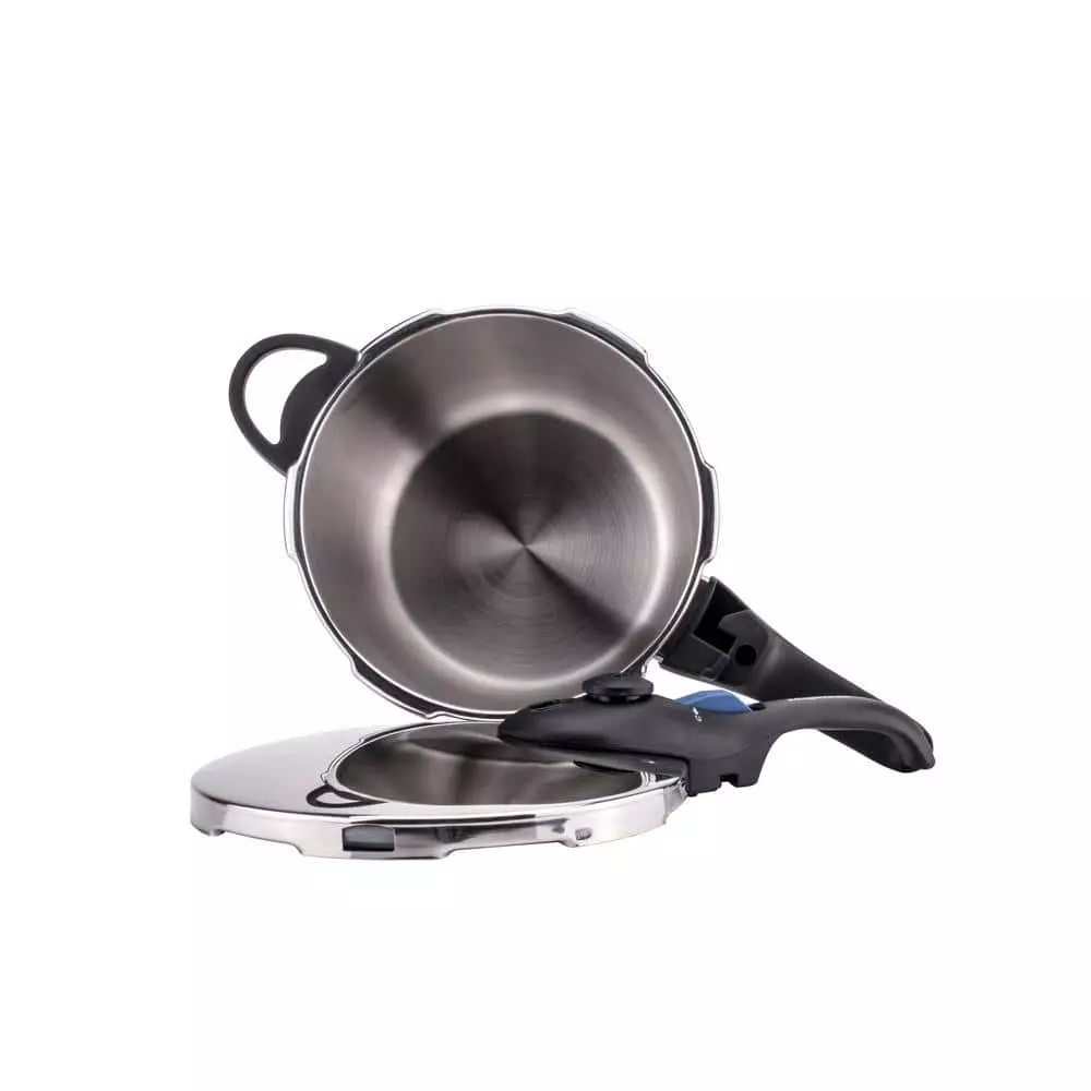 Favorite Six (6.3 Qts. + 4.2 Qts.) Super-Fast Pressure Cooker (11.6 PSI) allows reducing cooking time up to 70% compared to conventional cooking methods. Both bodies can be used with the same lid, allowing you cook different amount of food depending on who is coming for dinner. Long lasting durability thanks to its stainless-steel design and suitable for any type of stove: gas, electric, induction and ceramic. Essential for a healthy lifestyle as it preserves vitamins and minerals usually lost in traditional cooking methods. This high-performance pressure cooker can be used for pressure cooking, pressure canning, roasting and steaming. Resistant to rust, warping, cracking, tarnishing and stains. It unlock position to remove for cleaning and dishwasher safe make the Favorite Super-Fast Pressure Cooker the winner for effortless clean up.