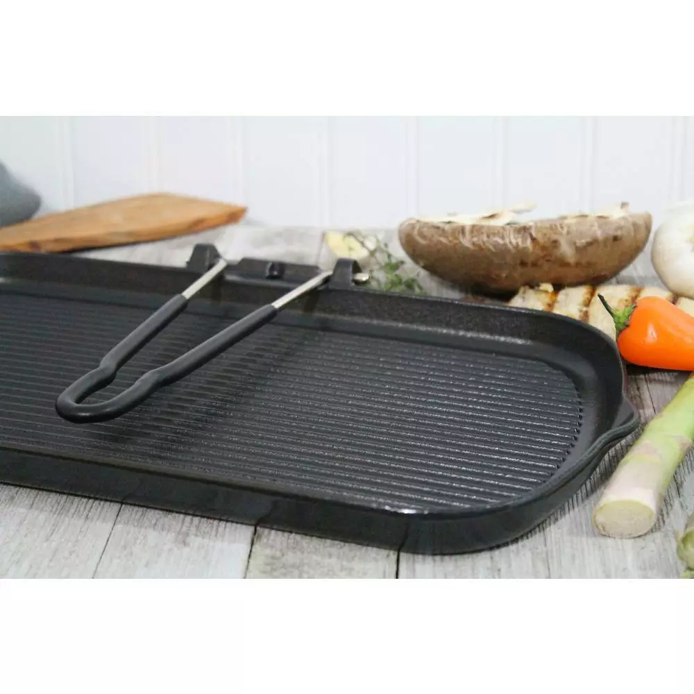 French Enameled 14 in. Cast Iron Grill Pan in Black by Chasseur
