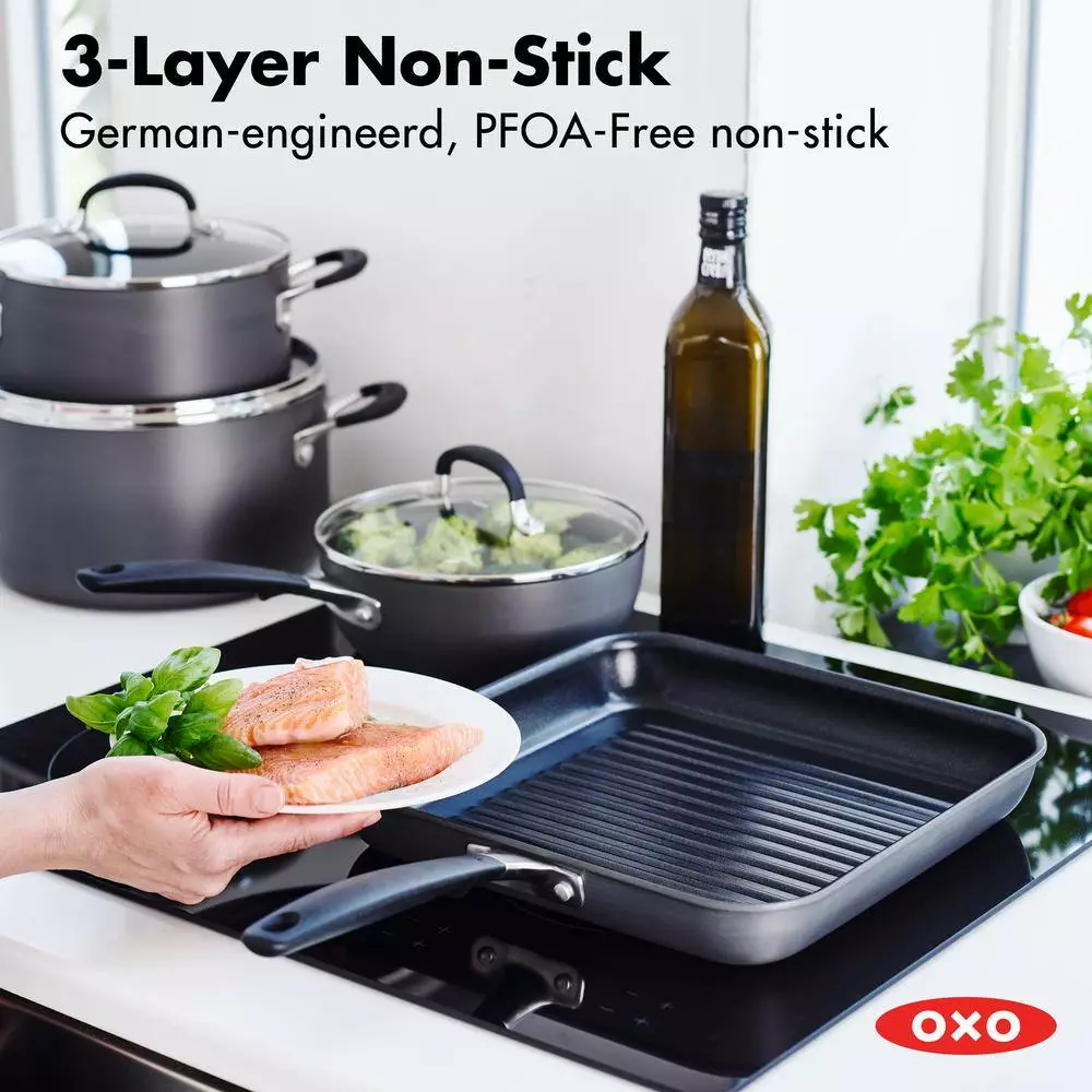 Good Grips 11 in. Hard-Anodized Aluminum Nonstick Grill Pan in Gray by OXO