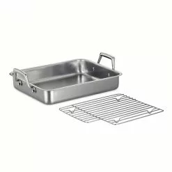 The Tramontina Gourmet Prima 13.5 in. Roasting Pan with Basting Grill is great for everyday meals and elegant feasts, these handsome, hardworking pans make it simple to prepare everything from perfectly roasted meats, poultry and fresh vegetables to satisfying home-baked casseroles like lasagna and mac-and-cheese. The secrets to their terrific performance are restaurant-quality 18/10 stainless-steel construction and a sleek, efficient design. Roasting pan includes stainless steel basting grill and heavy-duty, cast stainless steel riveted mirror-polished handles, for extra durability and a great look for your kitchen. Part of the Tramontina Gourmet collection, a series of timeless products crafted especially for the cooking enthusiast.