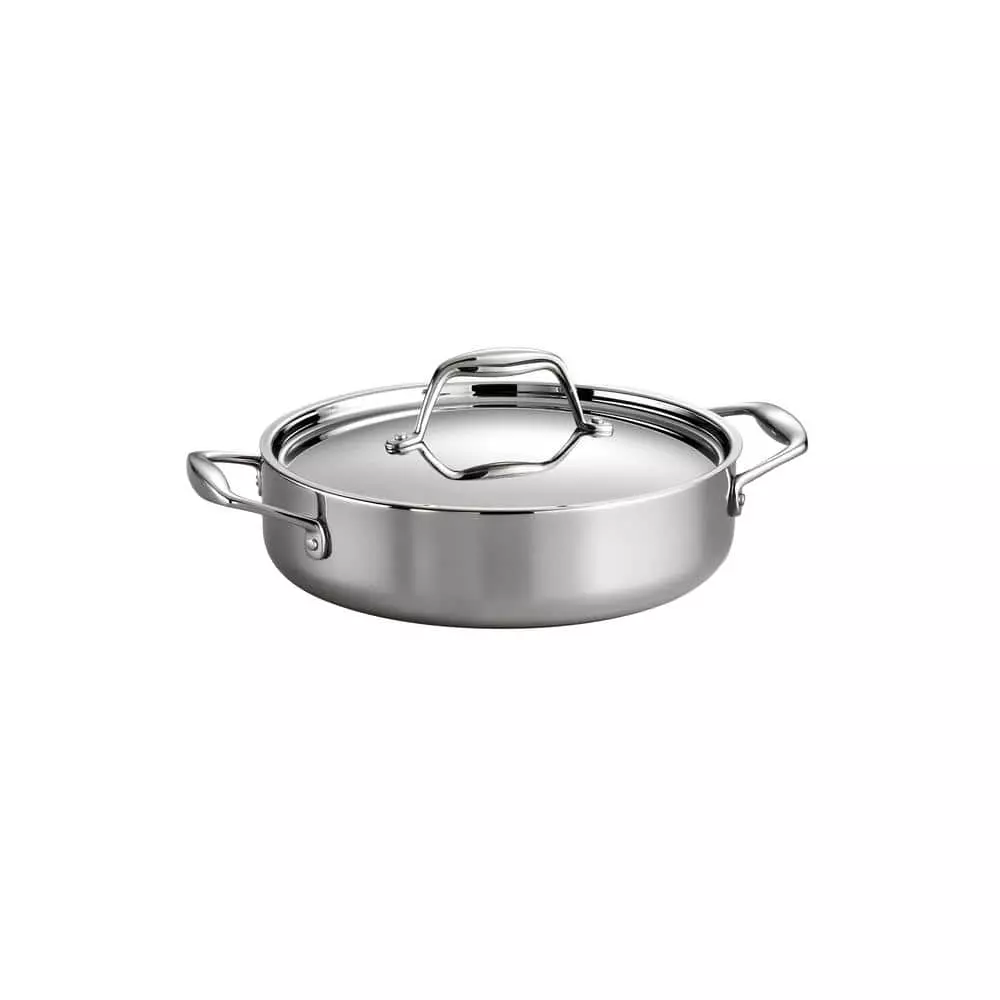 The Tramontina Gourmet Tri-Ply Clad 3 Qt. Covered Braiser provides exceptional performance, distributing heat quickly and evenly without hotspots. This cookware heats from all sides and not just the bottom. Combines the impeccable beauty and durability of premium 18/10 stainless steel and was designed to withstand repeated usage, even in the most demanding kitchens. Ideal for home and professional cooks alike. Part of the Tramontina GOURMET collection, a timeless product crafted especially for the cooking enthusiast.