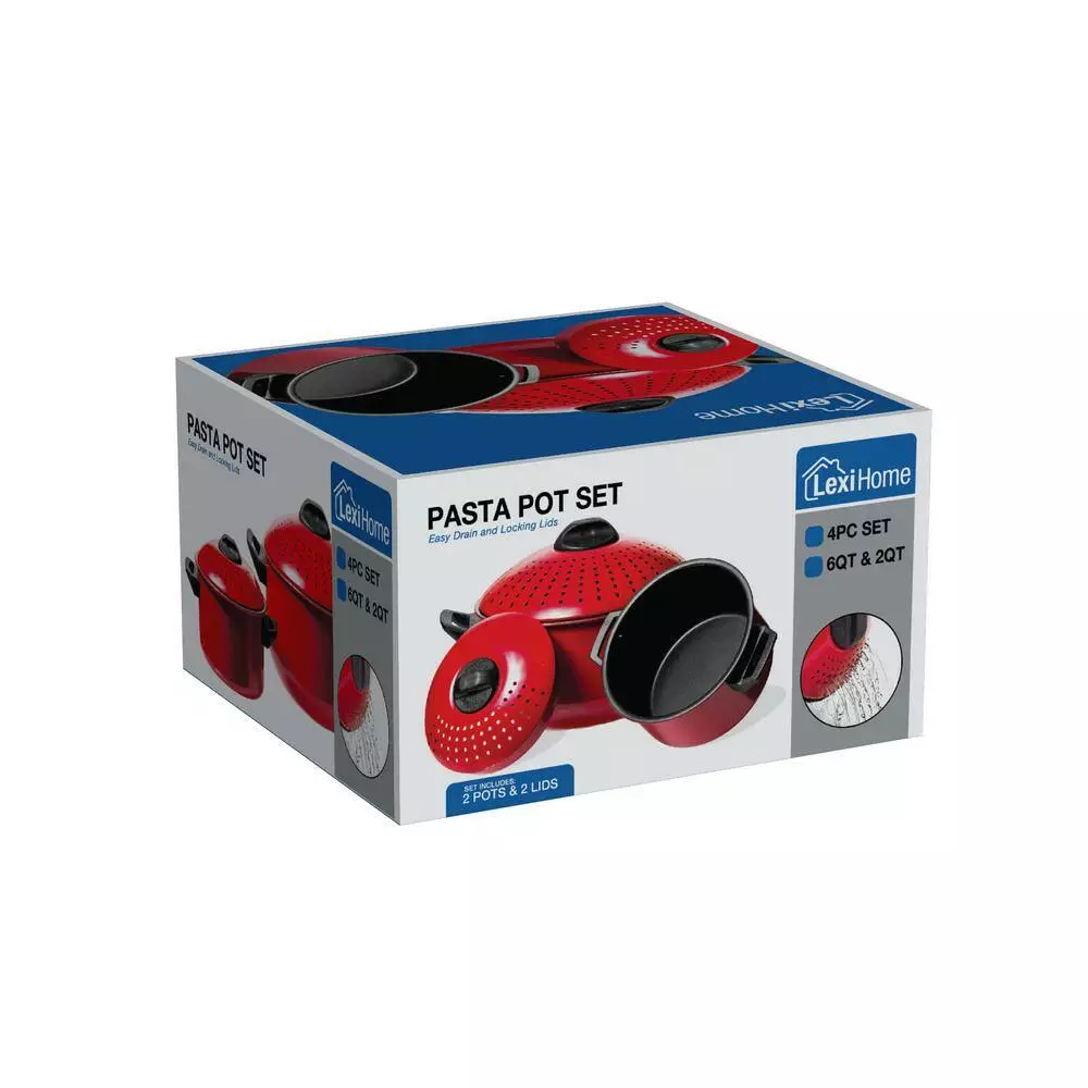 High-Quality Carbon Steel 2 qt. and 4 qt. Pasta Stock Pot – 4-piece. Set by Lexi Home