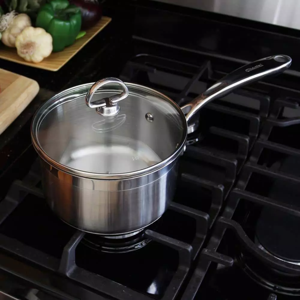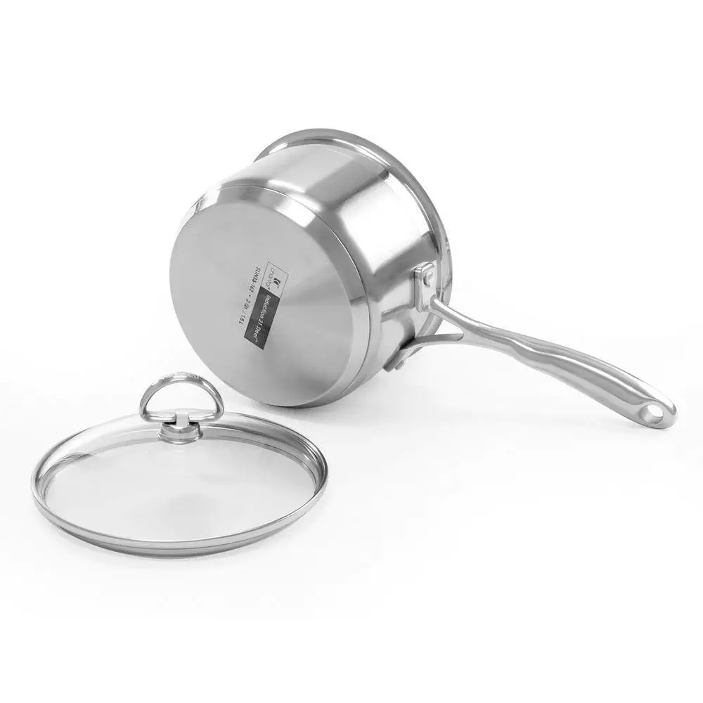 Made from strong Japanese steel, the construction and design of the Induction 21 Steel cookware line guarantee superior quality. Each piece has copper melted into the steel, which effortlessly conducts heat quickly and evenly. Titanium is also added for strength and durability to endure everyday cooking. To ensure healthy cooking, the steel is nickel free to prevent allergic reactions to nickel. The tempered-glass lid makes it easy to monitor cooking and the dripless pouring rim reduces spillage along the side of the body. The 2 Qt. Saucepan is the perfect choice for tender vegetables or delicate sauces. It features a wide flat bottom, straight sides to maximize capacity and a cool to the touch, long ergonomic handle. This is the best steel for magnetic induction and perfect for all cooktops.