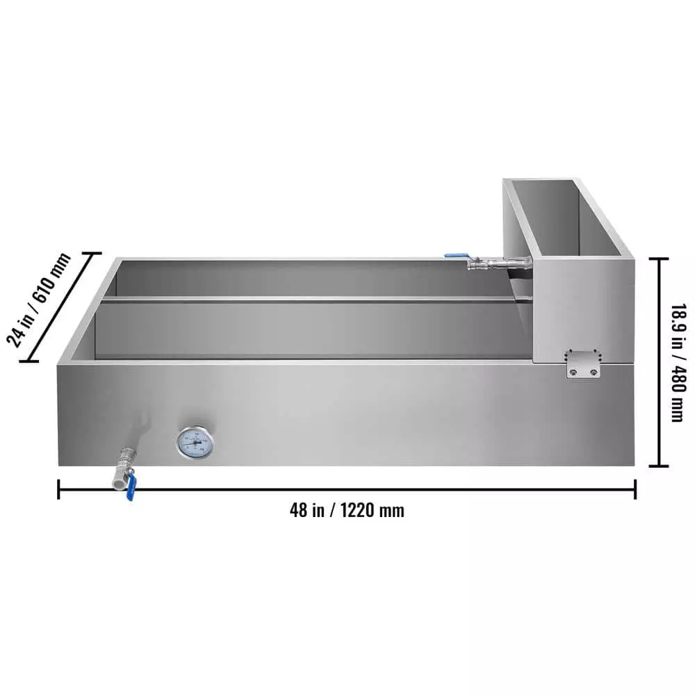 - Specifications:Material: 304 Stainless Steel,Valve Size: 3/4 in.,Thermometer: 32-392℉,Product Dimensions: 48 x 24 x 18.9 in.,Product Weight: 57.3 lb.