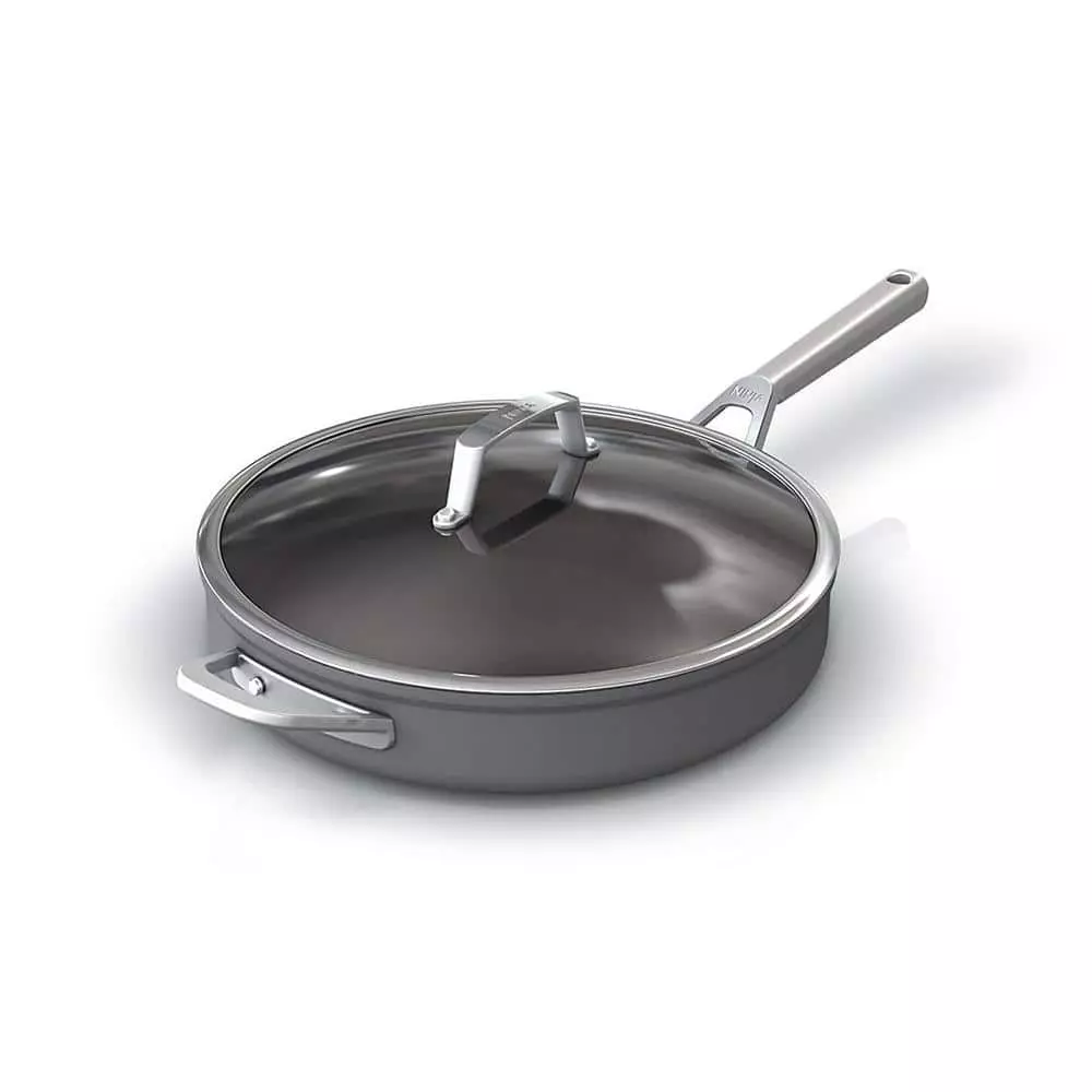 - INCLUDES: Easy-to-clean nonstick premium hard-anodized 4-Quart Saute Pan with Glass Lid.