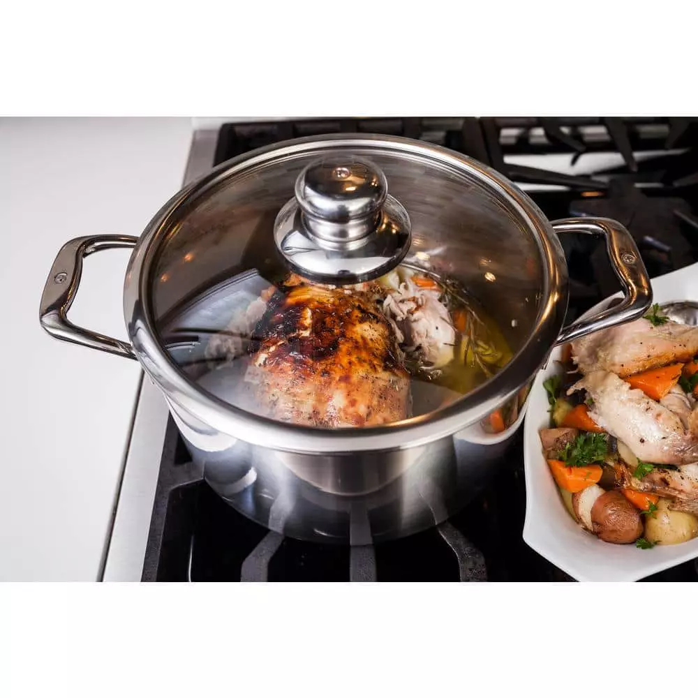 This beautifully crafted Premium Clad 6.3 Qt. Stainless Steel Dutch Oven is ideal for busy kitchens and family cooking. Durable, functional and elegant, this piece is a Swiss Diamond favorite. The bonded 5-layer construction provides you with even heat distribution consistently.