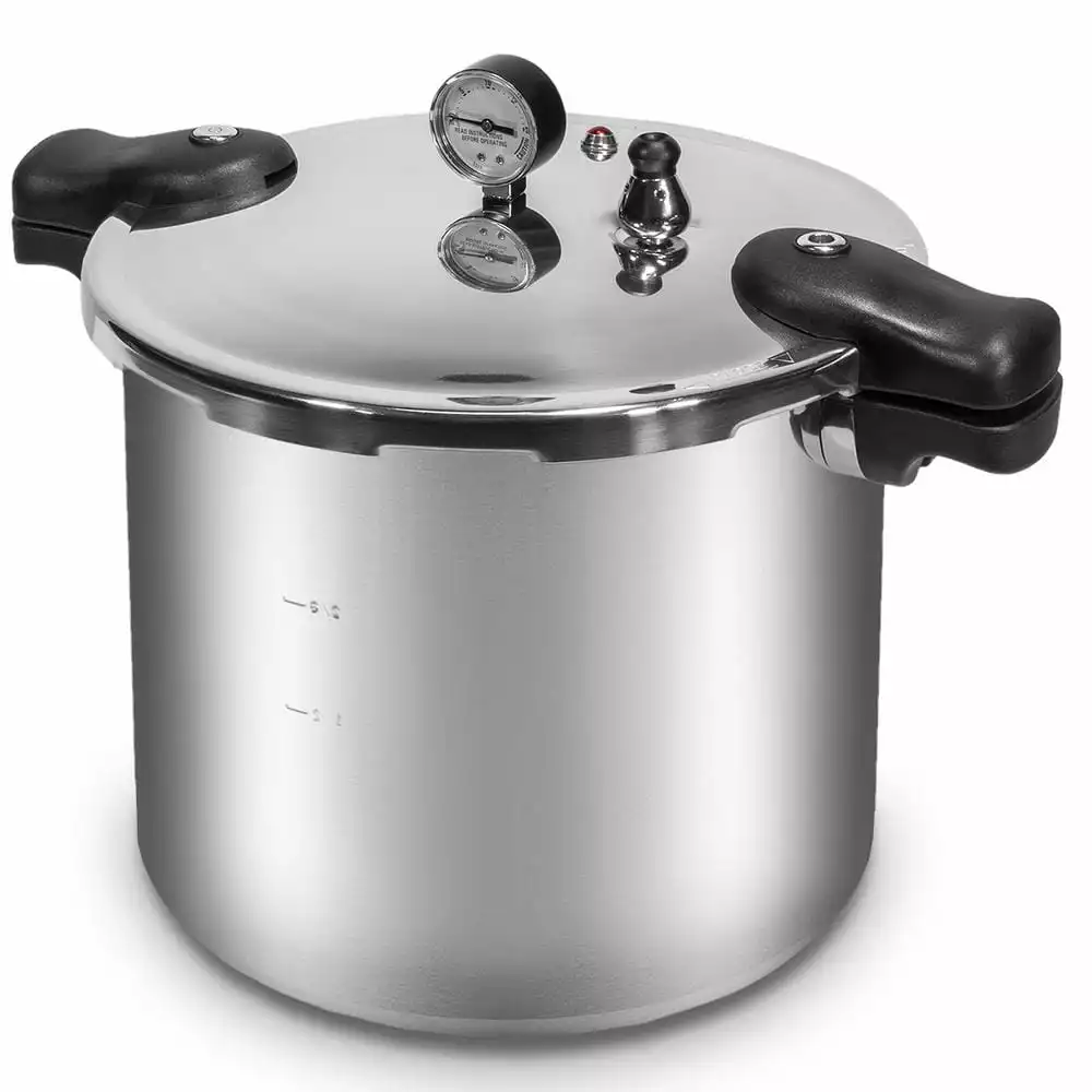 - Heavy gauge, rustproof polished aluminum, 22 qt. pressure canner and pressure cooker offers time and cost savings with a deluxe pressure gauge dial for easy pressure monitoring