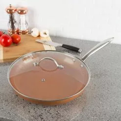 Allumi-Shield 12 in. Aluminum Ceramic Nonstick Grill Pan in Copper with Glass Lid by Classic Cuisine