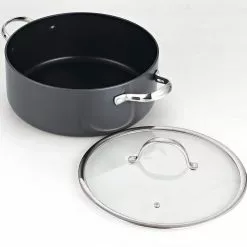 7 qt. Round Hard-Anodized Aluminum Nonstick Casserole Dish in Black with Glass Lid by Cooks Standard