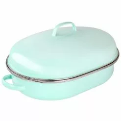 18 in. 8 qt. Martha Blue Enamel on Steel Oval Roasting Pan with Rack and Lid by MARTHA STEWART