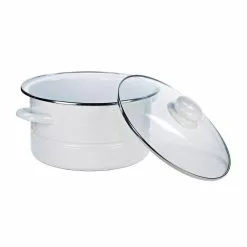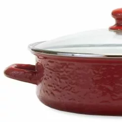 Solid Red 1.25 qt. Porcelain-Coated Steel Sauce Pan in Sea Glass with Glass Lid by Golden Rabbit