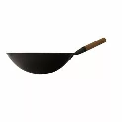 Large 15.75 in. Black Cool Roll Iron Wok with Wood Handle by SPT