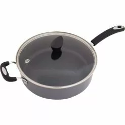 Stone Earth 5.3 qt. Aluminum Ceramic Nonstick Sauce Pan in Lava Black with Glass Lid by Ozeri