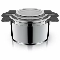 6-Piece Stainless Steel Inductive Pot Set with Straining and Hands-Free Glass Lids by Ozeri